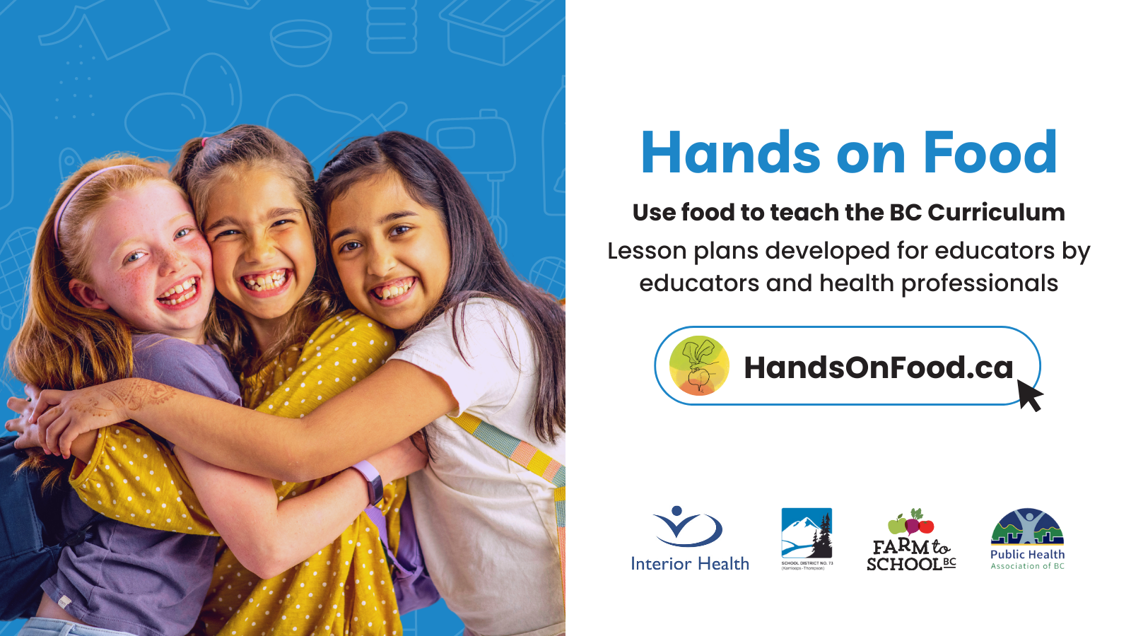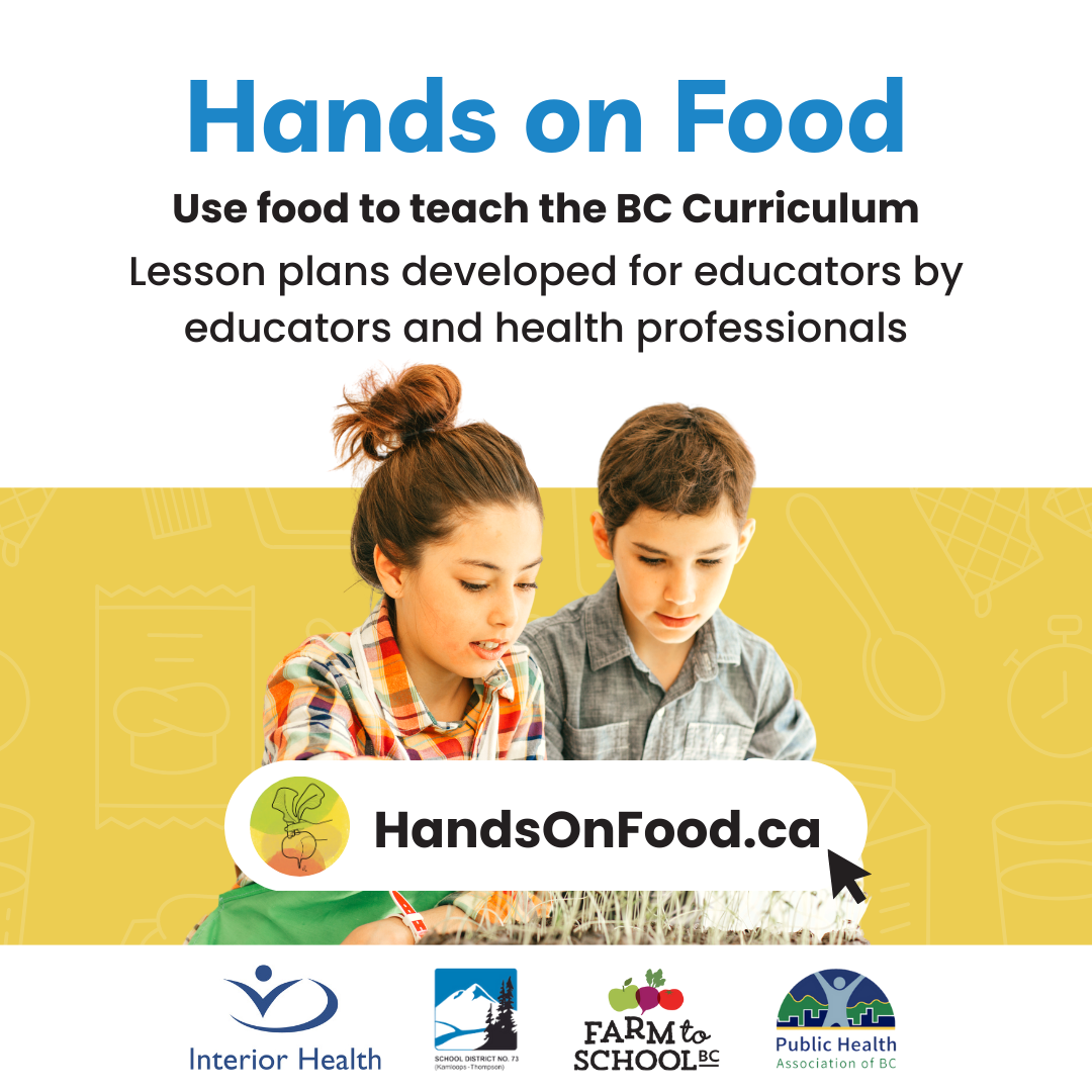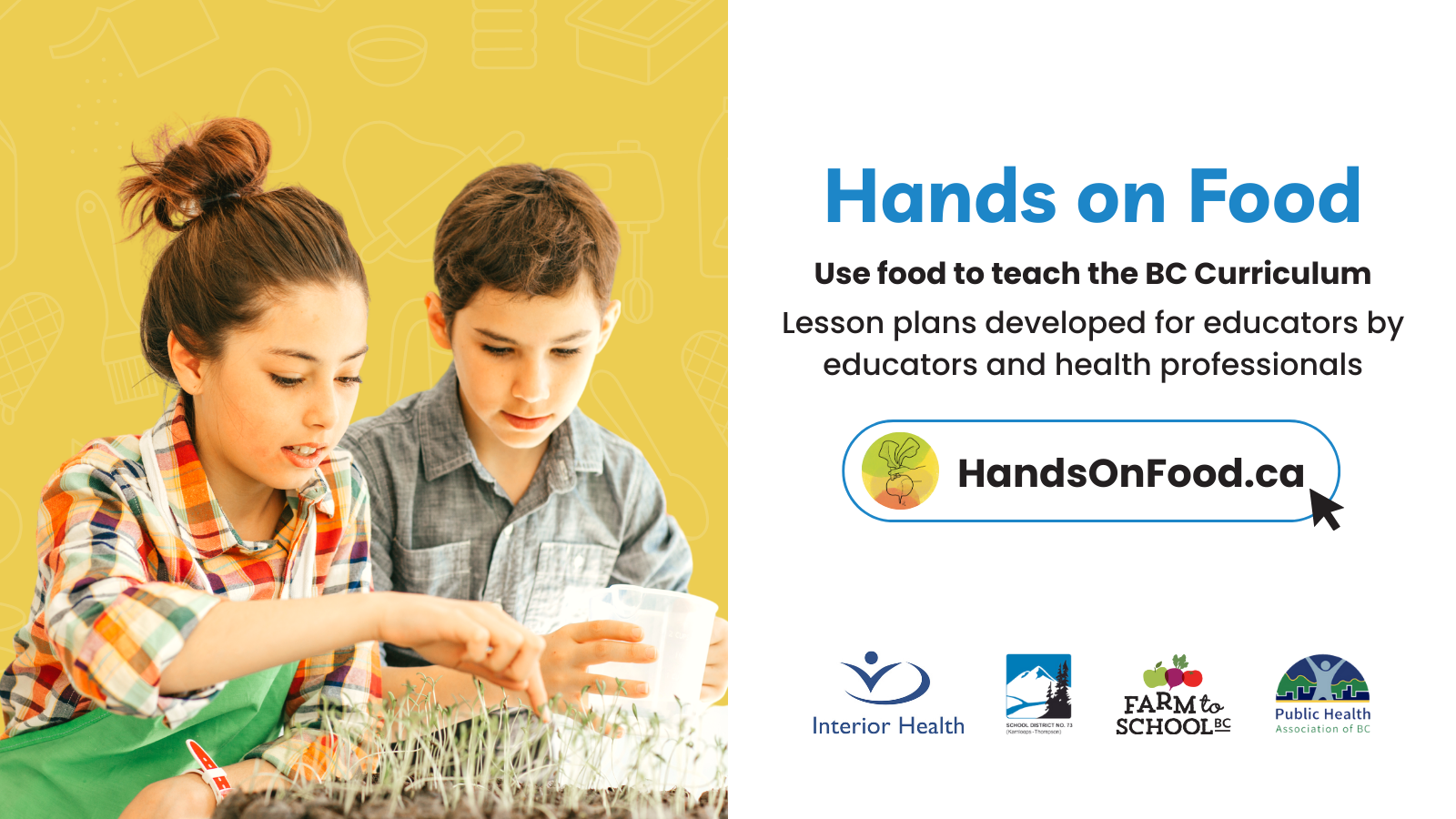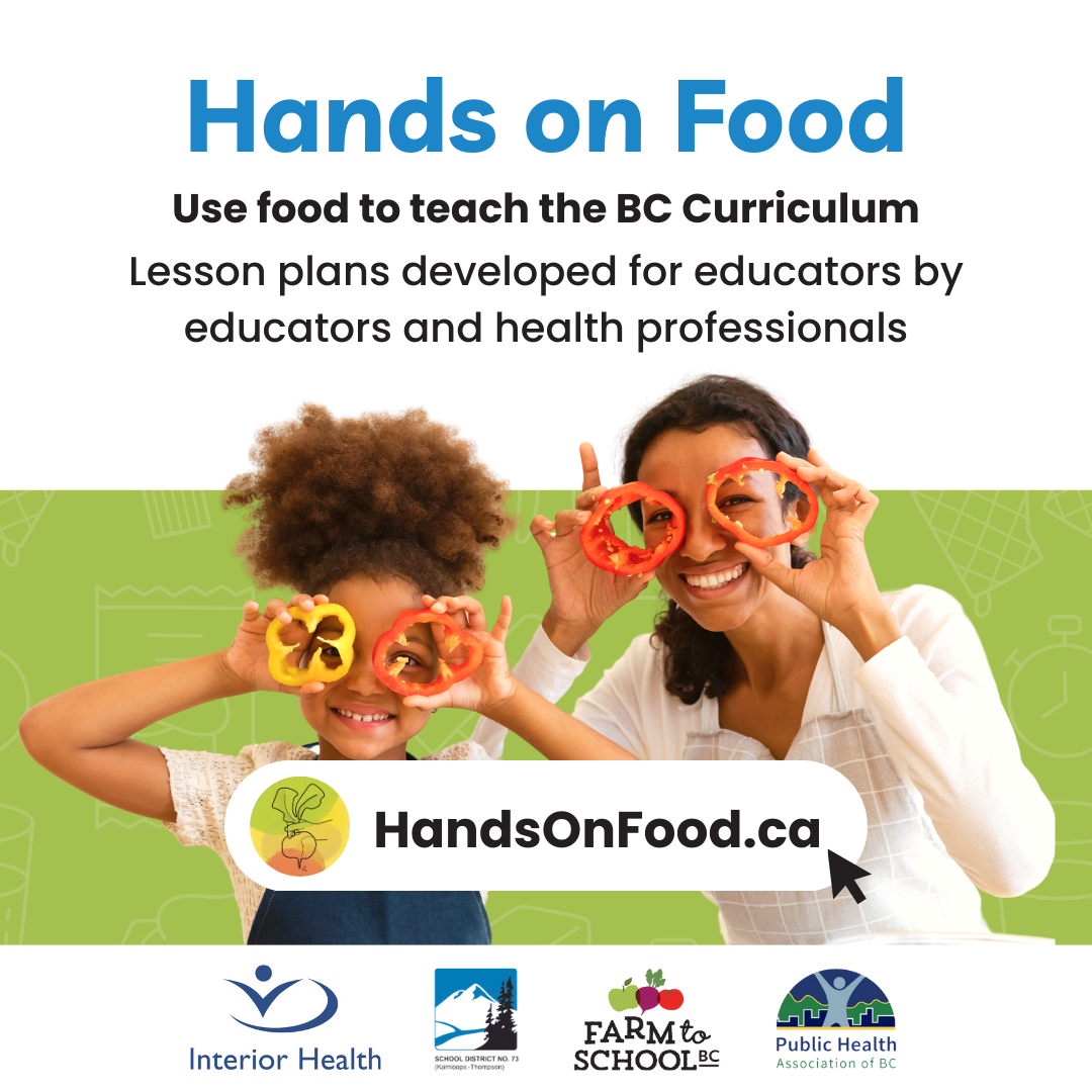 Hands on Food is a food-based teaching resource for primary and secondary school educators in BC! Developed by experienced educators and health professionals, it includes engaging lesson plans designed for grades 4 to 7 but easily adaptable to any grade level.